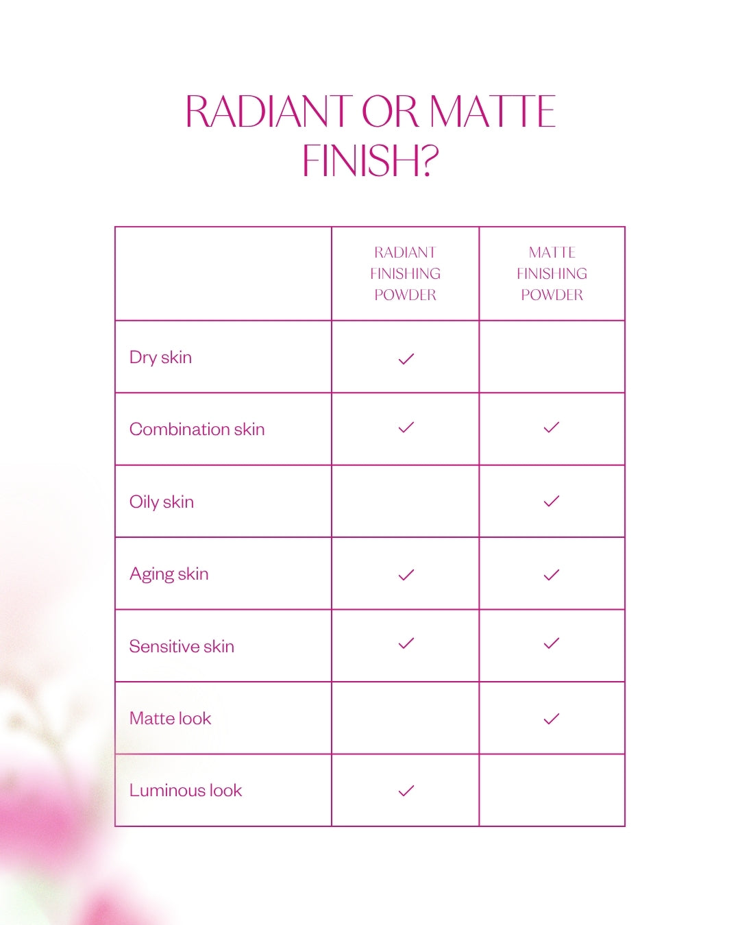 The finishing powder can be used all over the face or locally on smaller areas. It doesn't clog pores. Suitable for all skin types to control excess shine, including sensitive and allergy-prone skin.