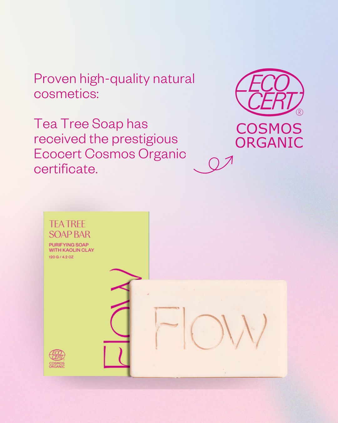 Proven high-quality natural cosmetics: Tea Tree Soap has received the prestigious Ecocert Cosmos Organic certification.