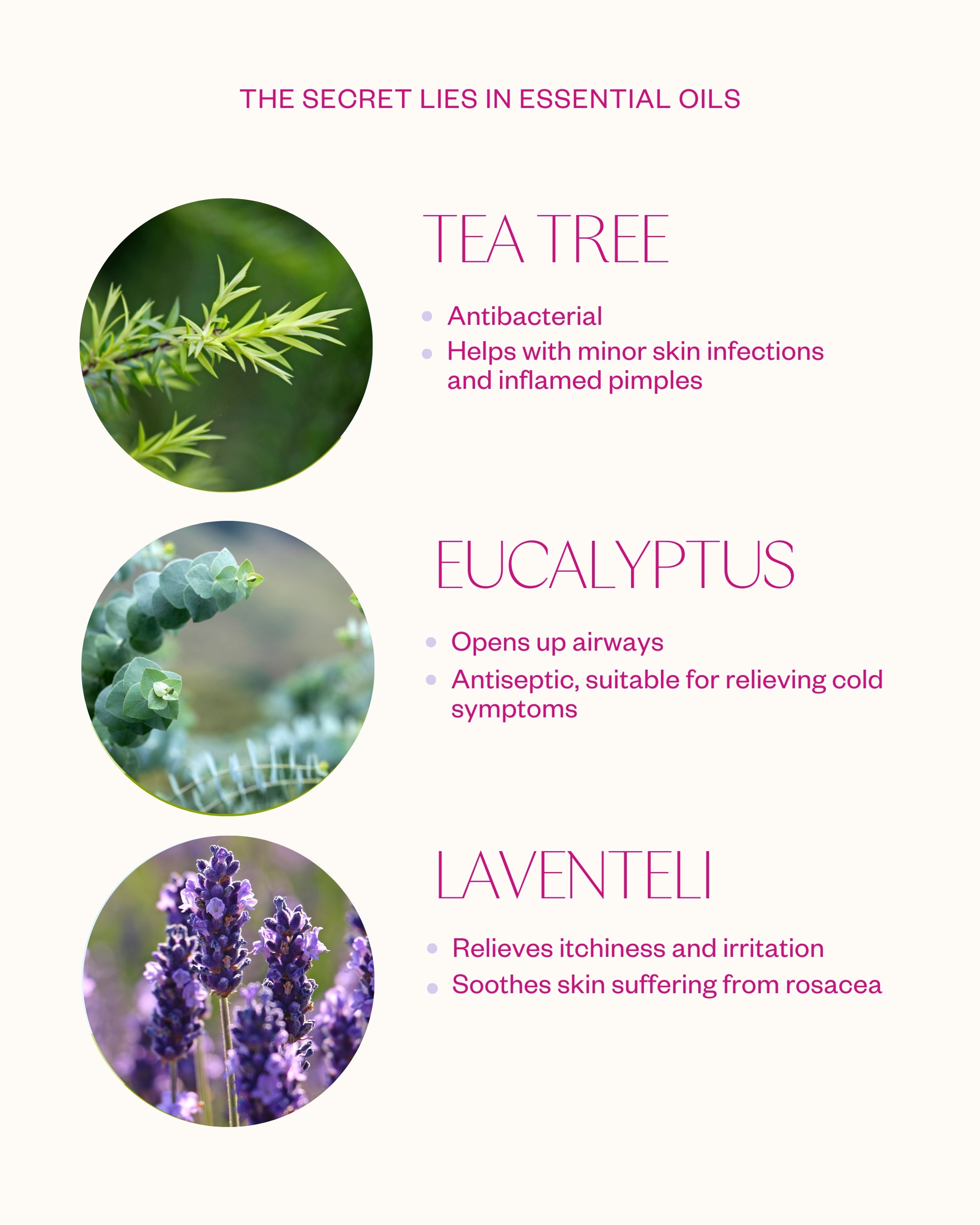 - For sore muscles: The therapeutic blend of essential oils soothes tense muscles and enhances blood circulation.